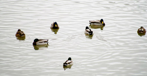 市内の池ではマガモが泳いでいた