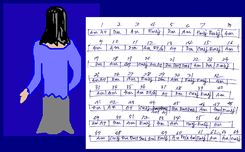 下のコードは、この音楽を作るときに描いたこの音楽の手描きコード(全曲)です〜