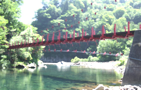 吊り橋を渡っていた