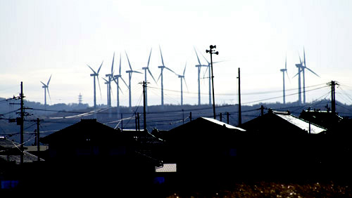 画像は、由利本荘市西目海岸からの風車(撮影:2008/11/25)