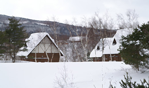 高原の雪道を歩いていると