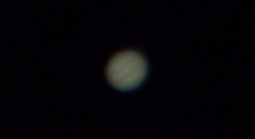 ハミングしながらメロディづくりしていたそのときに夜空を思い出して眺めてみたら夜空は微笑んでいた 嬉しくなって望遠鏡で覗いてみたら 何と木星までが微笑みを浮かべていた今までで最もよく撮れた木星でした〜(^o^)/ 2008年8月9日20:30頃の木星です〜(自宅2階ベランダから)