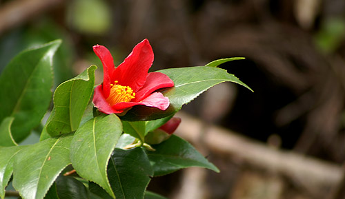 自己主張しているユキツバキの花